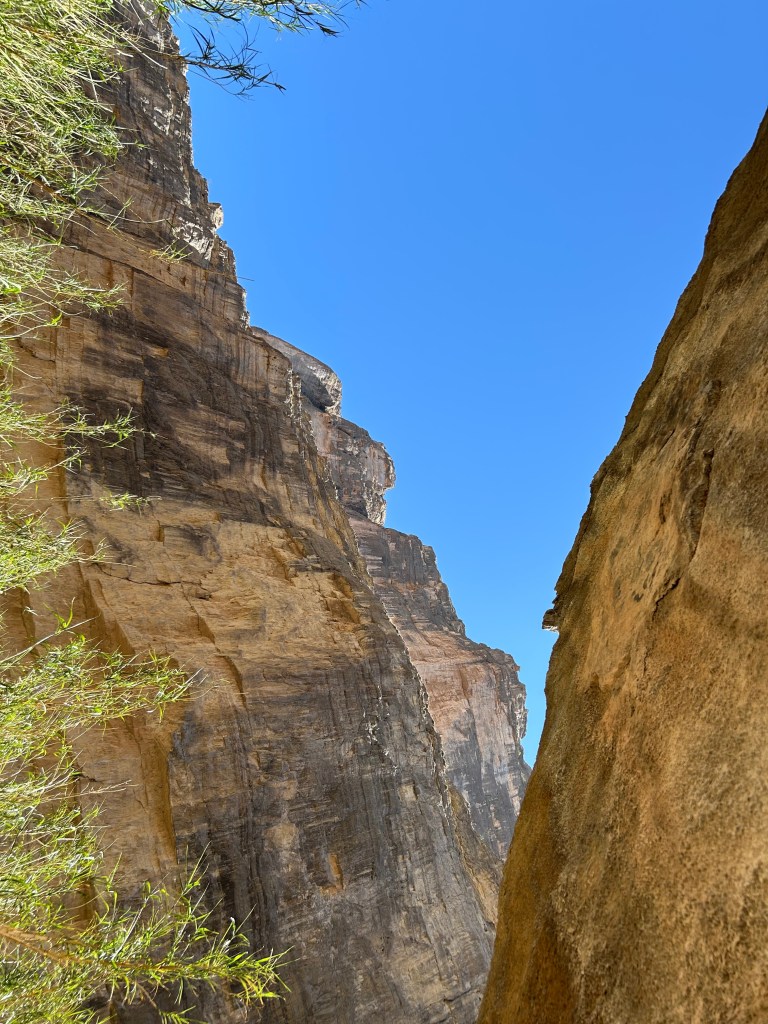 I deferred to his superior expertise, but my shoes and socks stayed on as I lingered for a while, craning my neck to admire the dizzying heights of the canyon walls.